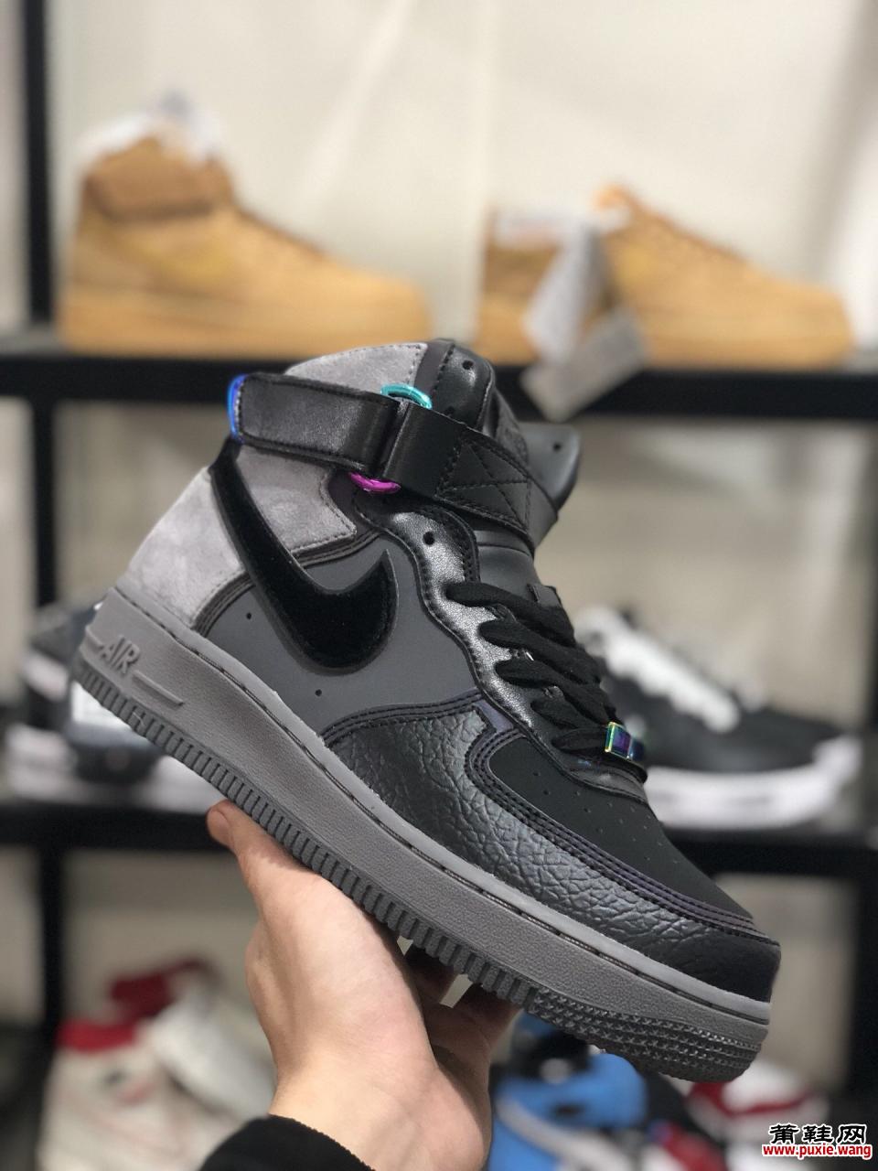 亚特兰大地标性潮流店铺A Maniere x Nike Air Force 1联名高邦 此款以冷酷的哑光黑灰为主色调,鞋面以细腻的荔枝皮、麂皮、牛巴等鞋材 鞋帮魔术贴、金属鞋带头以全息幻彩涂层点缀 质感高级全鞋针车部分由反光线勾勒,炫酷十足 让人格外着迷 货号:CT6665 001