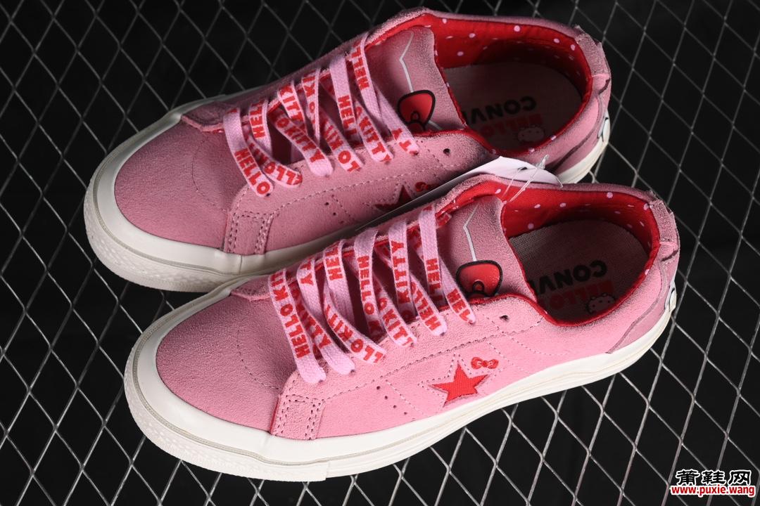 Converse x Hello Kitty 联名款 匡威低帮休闲板鞋 362941C #配色结合经典的One Star鞋款 粉色鞋身 侧面星星搭配刺绣蝴蝶结 呈现风格极为有趣 少女心十足 #两副鞋带 可替换使用或花式系带 根据服饰的色彩随意切换造型! 尺码:35 36 39.5 37 37.5 38 39 40 41 41.5 42 42.5 43 44