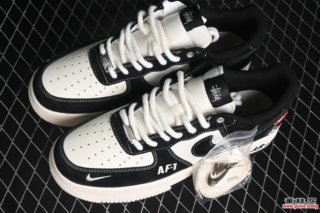 Nike Air Force 1’07 Low 斯图西联名-米黑红标 空军一号低帮休闲板鞋 SJ6698-008 #原楦头原纸板 原装鞋盒 定制五金配件 内置全掌气垫 原厂鞋底 尺码:36 36.5 37.5 38 38.5 39 40 40.5 41 42 42.5 43 44 44.5 45