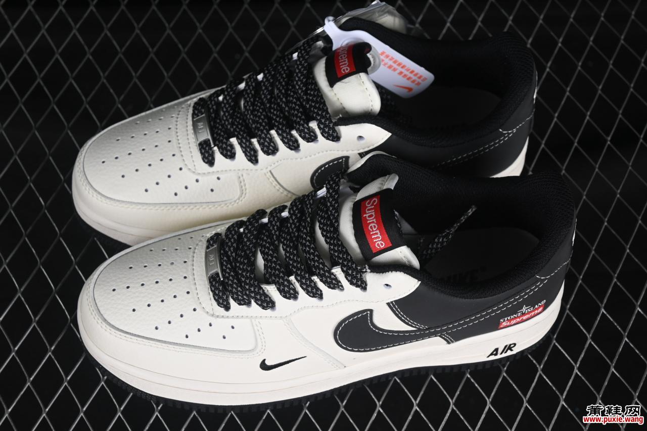 Nike Air Force 1’07 Low 石头岛Supreme联名 米黑拼接 空军一号低帮休闲板鞋 HH7518-042 是一款备受瞩目的运动鞋,其设计结合了经典与现代元素,深受消费者喜爱。这款鞋采用米黑色拼接设计,展现出独特的时尚感,同时保留了空军一号系列的经典轮廓。