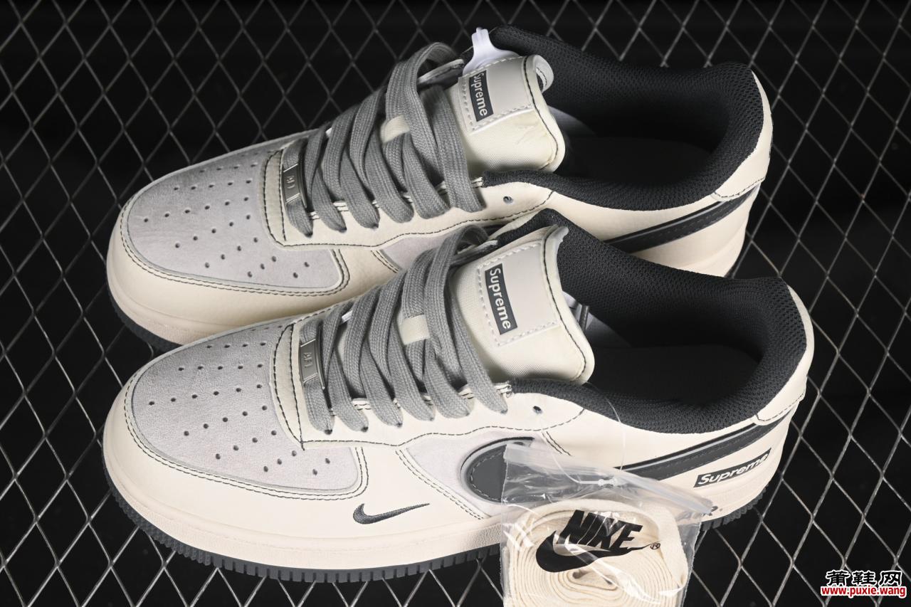 作为Nike Air Force 1系列的经典延续, Nike Air Force 1’07 Low Supreme联名款猪八灰底休闲板鞋(货号XZ6188-367) 凭借其独特的联名设计与原厂工艺,成为2025年春夏备受瞩目的鞋款之一。以下从设计、工艺、配置及尺码选择等方面展开详细介绍。