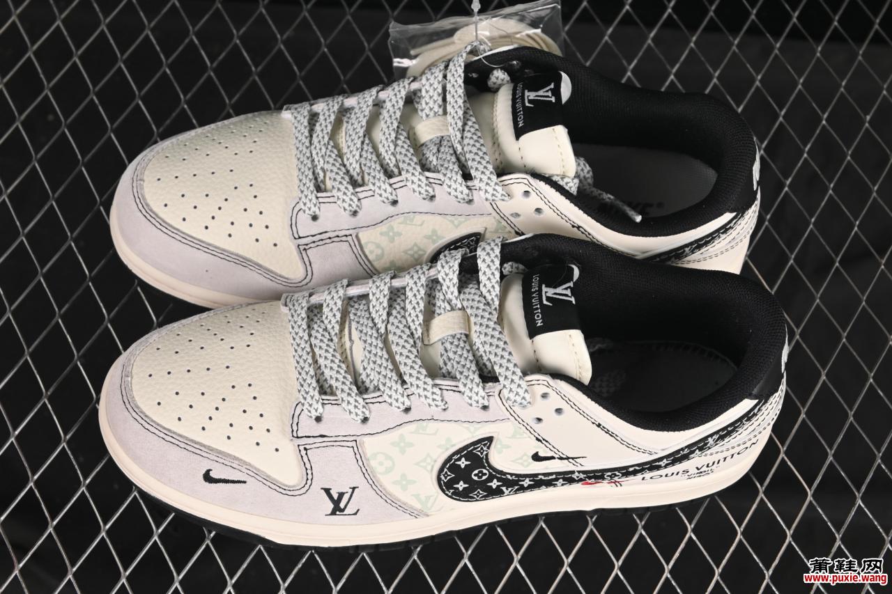 Nike SB Dunk Low LV联名款(货号:YX5066-365)为纪念路易威登箱包经典元素移植街头文化20周年而生。鞋身采用三重奢侈品工艺: