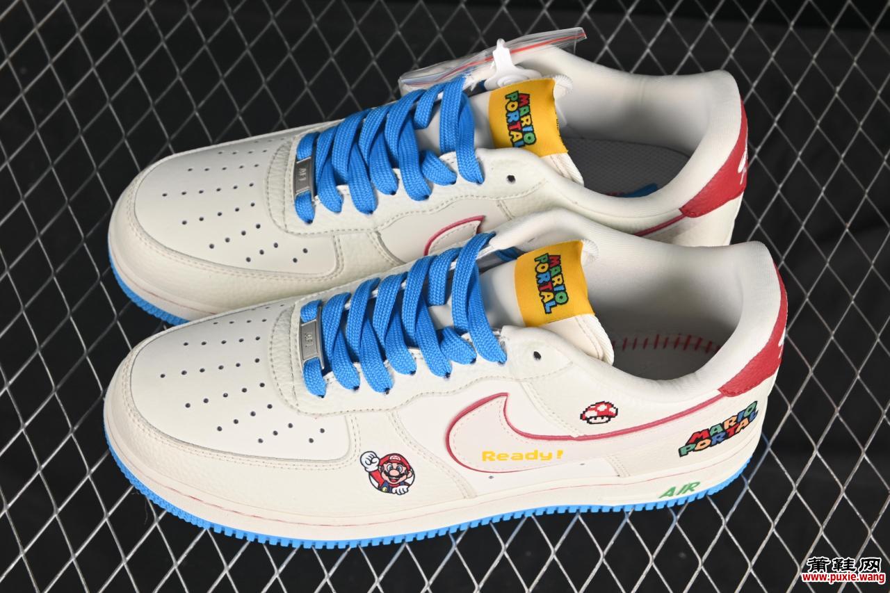 Nike Air Force 1’07 Low “马里奥联名”(SC0601-567)以任天堂经典角色为灵感,复刻80年代像素美学。鞋身采用白蓝彩皮革拼接,侧身Swoosh融入像素化渐变效果,后跟刺绣马里奥帽徽彩蛋,搭配做旧冰蓝水晶底,完美还原游戏场景。低帮轮廓搭载5cm隐形增高,鞋舌隐藏”1UP”主题标签,兼顾街头潮流与复古情怀。