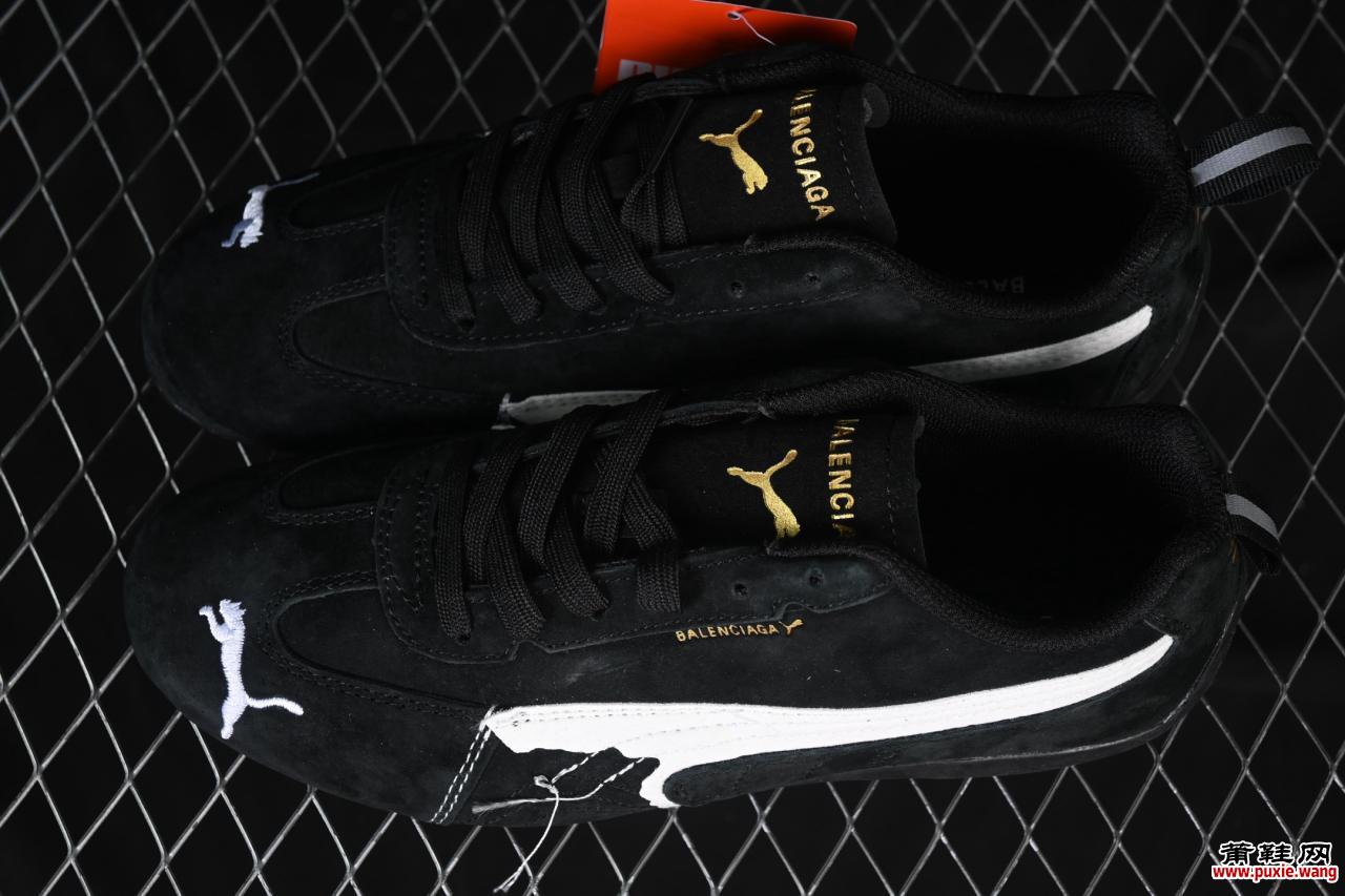 作为潮流界备受瞩目的三方联名力作,The Open Product与Puma携手打造的Speedcat极速赛车系列生活休闲鞋(型号406519-02),凭借其独特的设计理念与高端工艺细节,重新定义了经典赛车鞋的时尚内涵。本次合作不仅延续了Speedcat鞋型标志性的流线轮廓与速度美学,更融入了巴黎世家(Balenciaga)倡导的前卫解构主义风格,呈现出复古与未来感交织的视觉效果。