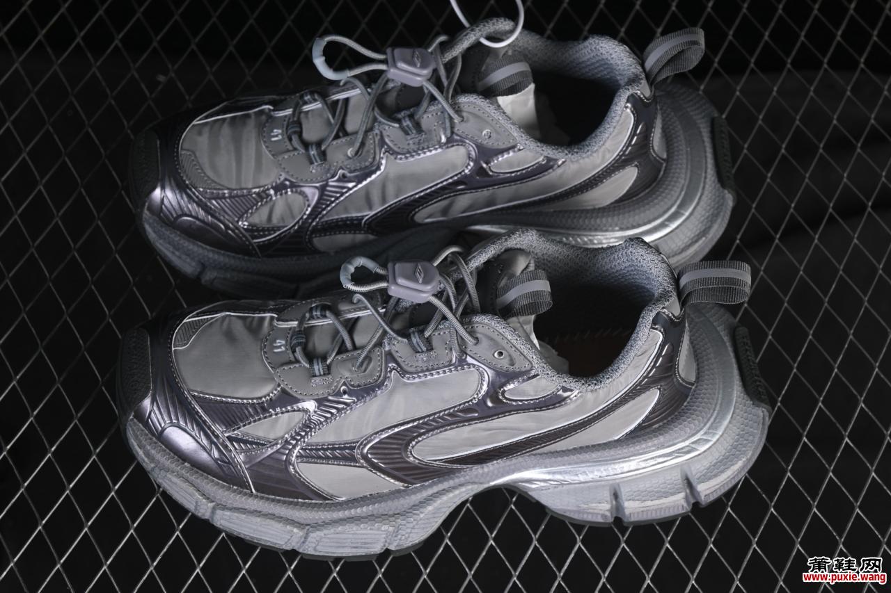 鞋身采用创新性立体模具成型技术打造,呈现出极具辨识度的夸张轮廓与流体线条,彻底打破传统跑鞋的设计框架。多层复合网布与高性能弹性材质的结合,在确保透气性与包裹感的同时,更赋予鞋款强烈的机械美感。细节处理上秉持巴黎世家一贯的精工标准:激光雕刻标识、隐藏式鞋带系统与不对称结构设计,无不彰显出高端奢侈品牌的制作水准。
