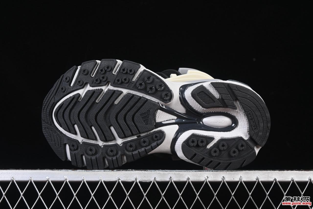 初见这双Adistar Jellyfish,你一定会被它独特的流线型轮廓吸引。鞋身借鉴了水母的仿生学设计,流畅的线条从鞋头自然延伸至后跟,侧边三条纹巧妙地融入波浪形曲面中。这种复古未来主义的设计语言,既保留了80年代的运动基因,又呈现出超前的外观视觉。JP9265这个型号承载着阿迪达斯档案库的经典元素,橡胶外壳与网面材质的碰撞创造出丰富的层次感。
