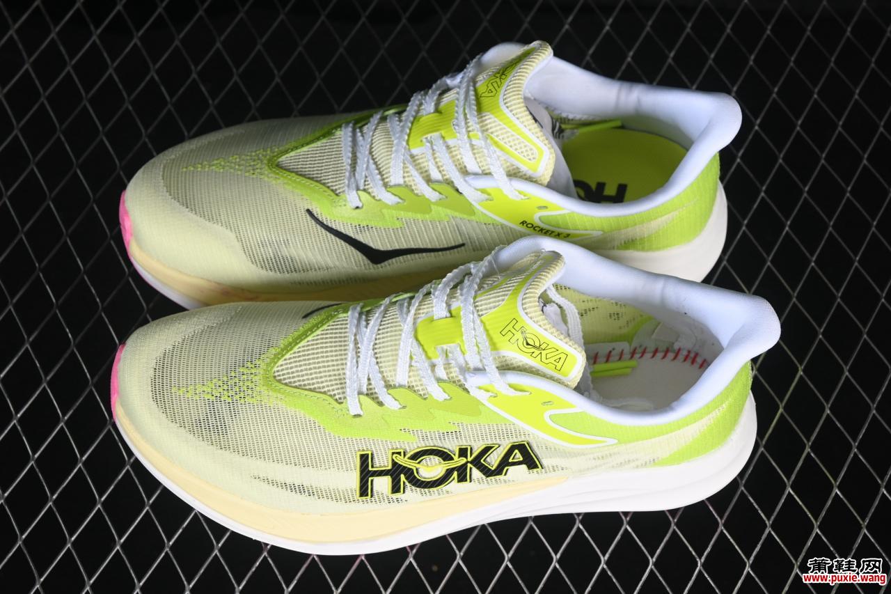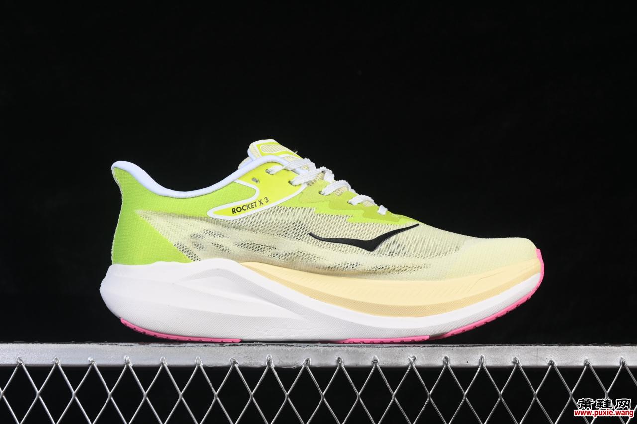 这款Hoka Rocket X 3(货号1168724)是品牌为顶尖跑者与破速梦想打造的终极武器。其最颠覆的设计在于彻底拥抱“自然步态”。从鞋面到中底、外底,采用了全方位的不对称结构,并非为了标新立异,而是紧密贴合跑步时足部真实的受力与滚动轨迹。鞋面在脚趾弯折区域与足弓支撑区域的剪裁、材质密度均不相同,旨在减少摩擦、提供动态贴合,仿佛是为奔跑中的双脚量身定制的第二层皮肤。