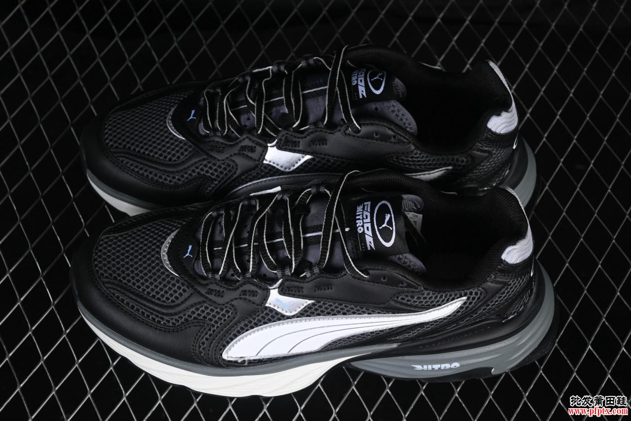其宣称的“舒适”核心,源于彪马核心的NITRO™氮气缓震科技。这种注入氮气的中底材料,相较于传统EVA泡棉,实现了重量与性能的双重突破。上脚后能明显感受到落地时的柔软缓冲,以及起步蹬伸时清晰不拖沓的能量反馈,有效减少了路面冲击对关节的负担。这种软弹兼备的脚感,使其非常适合进行中等强度的有氧跑或长时间的健步走。“防滑耐磨”则体现在外底设计上,全掌橡胶搭配科学的多向纹路,确保了在湿滑路面和硬化地面上的可靠抓地力,关键区域的加厚处理也显著提升了鞋底的耐久性。