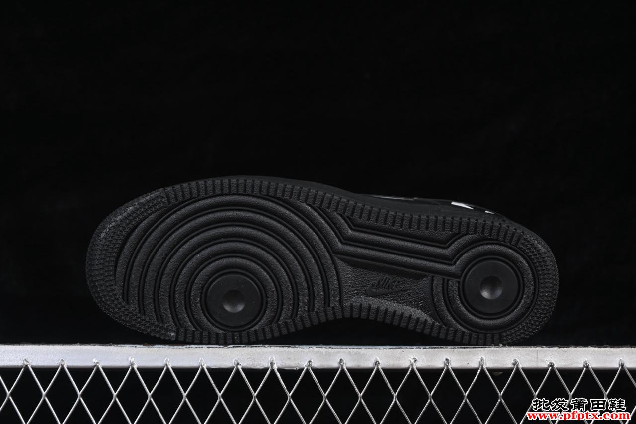 穿搭上,这双全黑皮革的AF1是塑造高段位简约风格与暗黑先锋造型的利器。由于其设计本身已极具分量感和辨识度,最佳搭配方式是“做减法”。可以选择黑色阔腿西裤、垂感休闲裤,搭配同样线条利落的黑色或白色上衣,营造出整体感极强的时装氛围。它也能为日常的牛仔造型瞬间注入低调的奢华感,成为一身搭配中质感最突出的部分。其适用场合也从街头延伸至画廊、买手店等需要展现个人审美态度的空间。
